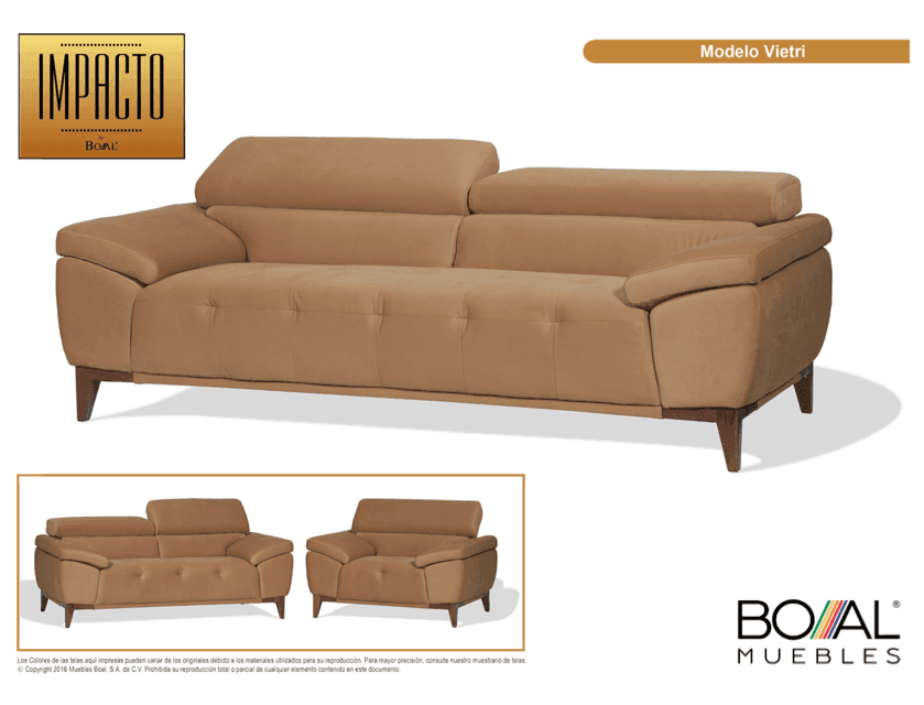 Madera de pino de ¾ de pulgada, cepillada, seca y estufada. Ensamblado con grapas de 2 pulgadas, 1 ¾ pulgada y de 1 ½ de pulgada y escuadras en esquinas. Asientos con espuma de 24 kg/m³ de densidad y firmeza de 28 lb. Resorte zig-zag cal. 8. Delcrón laminado en asientos de 270 grs.